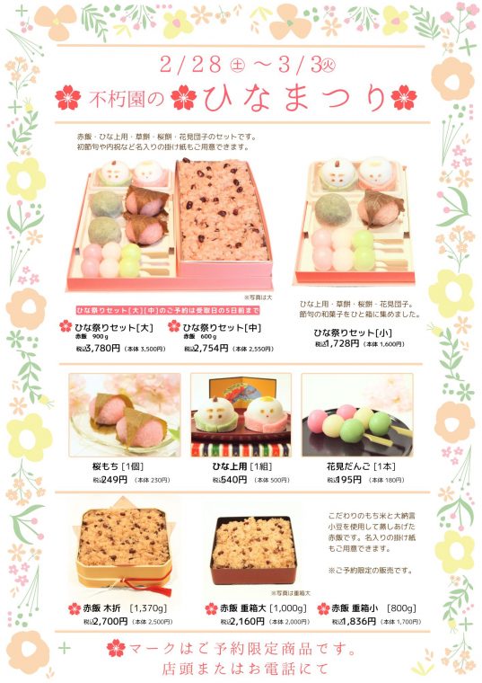 🌸🎎ひなまつりの御菓子 ご予約受付中!🎎🌸