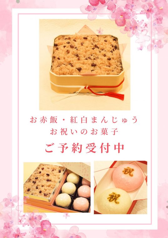 - 🌸入学祝に🌸和菓子屋のお赤飯・紅白まんじゅう🌸ご予約受付中!🌸