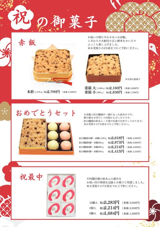 ※「おめでとうセット」はお受取日の1週間前までのご予約が必要です。店頭もしくはお電話にてご予約いただけます。