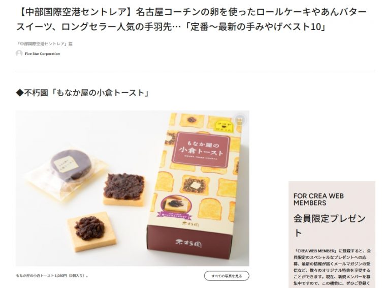 雑誌CREAのwebにて公開されています『空港の手みやげ』特集vol.4 セントレア編 にて